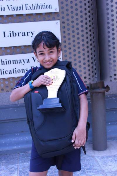 Meghna won a laptop for being the national level winner under Group III in the competition held last month. She was awarded with the laptop at Chinmaya Heritage Centre, Chetpet, Chennai on August 25th, 2013.