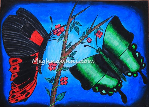 Titlee – The Butterfly – Second All India Painting competition held last month. Meghna had sent a painting to Gurgaon and she is been selected for a Merit Award by ARTINFOINDIA.COM. Her painting will be displayed at an exhibition from 16 October 2013 to 30 November 2013 at Lobbies of India Habitat Centre, Lodhi Road, New Delhi. This is her painting.