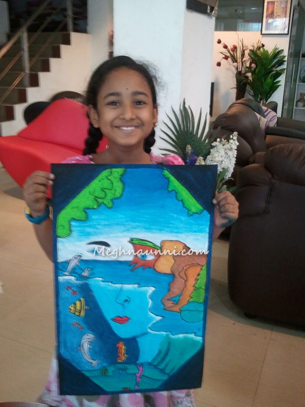 Meghna working on her painting at Antony Furniture Drawing Contest 2013. In the first round, children were allowed to draw anything.