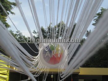 meghna-in-front-of-music-vertical-at-berserk-2014 The evening group session was conducted by 3peel. All assembled people were given a small square canvas and asked to paint a semi circle on the canvas. After every one finished, all the canvases were grouped and it was a spectacular sight.