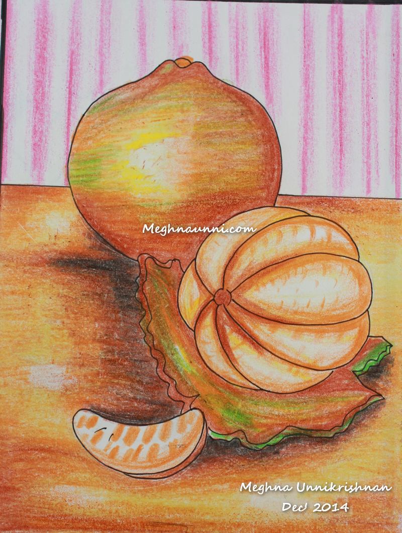 Orange Painting. This is done using plastic crayons as the medium. I just loved this medium. Earlier I thought it as a very dry crayon which will not blend well. Now I am satisfied with the outcome of continuous work on Plastic crayons. Hope to do more and hope you all liked my work. Thank You Sir for introducing me to this.