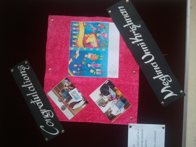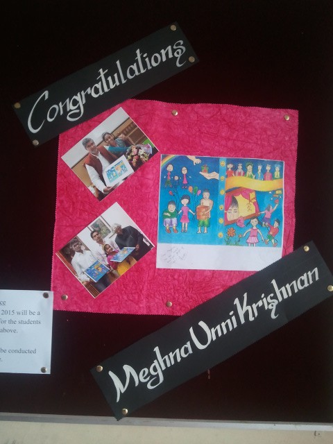 My photos of the meetings with Dr. APJ Abdul Kalam and Shri. Kailash Satyarthi are pinned on my school notice board at The Schram Academy, Maduravoyal. Very Happy.
