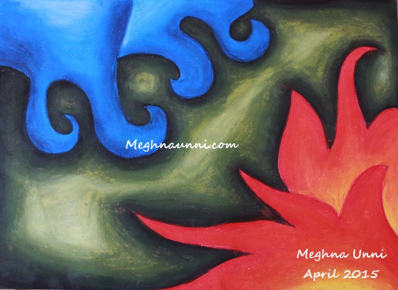 Fire and Water – Elements of Earth Painting done by me. Purely my imagination of the elements of the earth – Fire and Water. Both fire and water has great significance in our mythologies and also in our daily life.