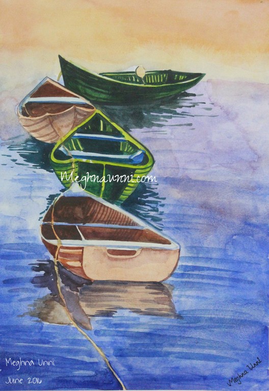 Boats Painting done by me about 6 months ago. This is not an original work created by me. I have re-drawn and painted this for practice in my drawing class seeing an artist’s work. Medium : Water Colour Painting Boats Water Colour Painting Tagged on: children paintings Nature Paintings Still Life Paintings Water Color Paintings