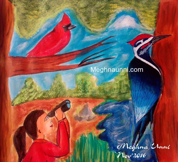 Painting for the topic “Bird Watching” for the preliminary round of The Hindu Young World Painting Competition 2017-18. I got selected for the Chennai Finals of the competition held on Dec 18, 2016 at SBOA School & Jr.College, Anna Nagar.