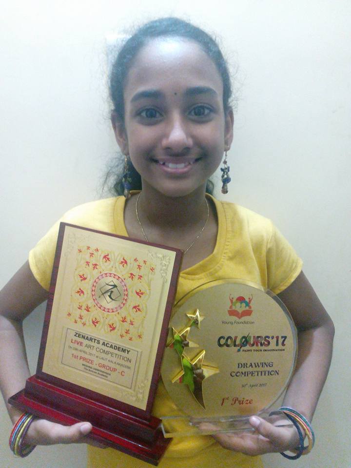 Participated in Zen Arts Academy’s Exhibition Drawing Competition at Lalit Kala Akademi and Colours’ 17 Drawing Competition on successive days and won first prize in both.