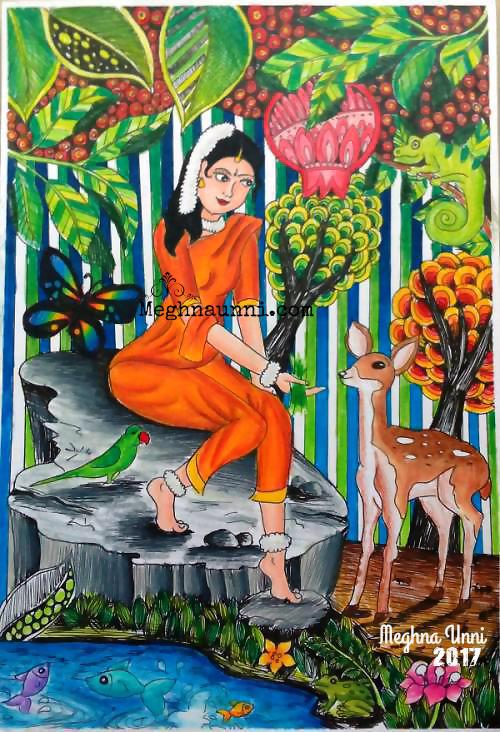 Shakunthala Painting in Pencil Colours.