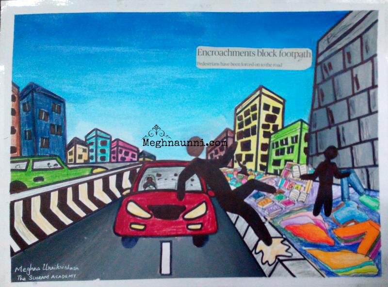 Road Safety Poster Painting done by me for an exhibition at Anna University last year. Our school team won 2nd place in the exhibition.