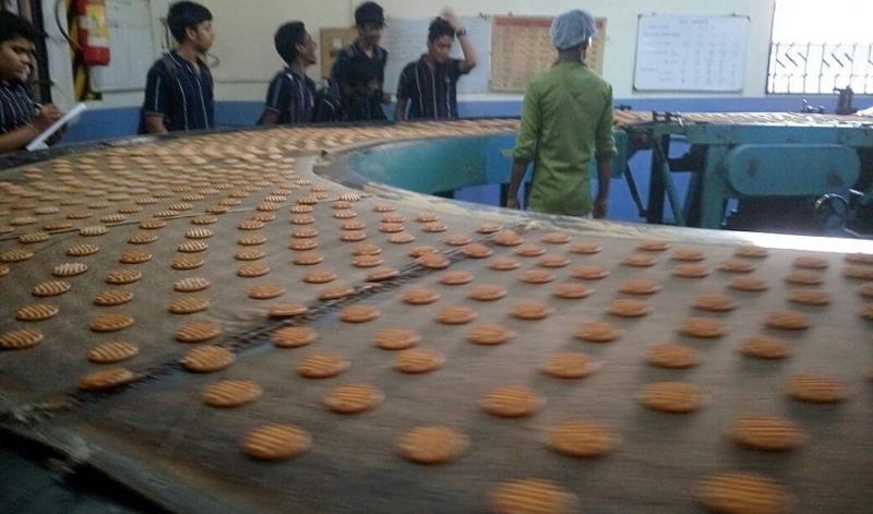 Then we moved to the baking area. The rows of biscuits, freshly baked, could be seen moving on the conveyor belt into the packing area. Few students took some biscuits from the conveyor belt and tasted it. It was not like the packed and stored for months biscuits that we usually eat. This was really hot and tasty, and was brittle and fresh. After watching the machine smartly pile up the biscuits for some time, we left the factory and headed for the buses waiting for us, to be taken back to the school.