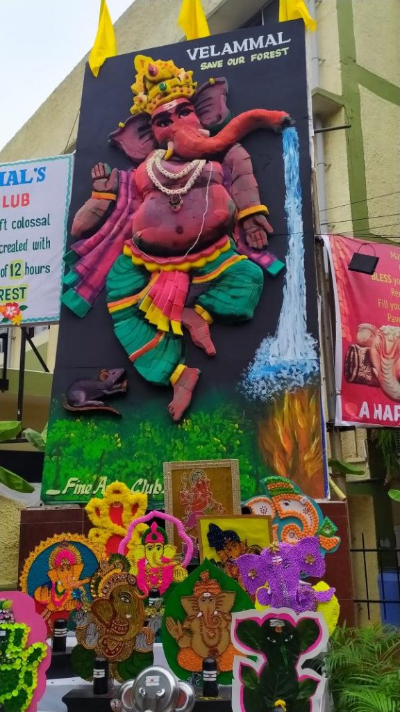 So here are some photos of Ganesh idols made from different materials. This was on display in front of Velammal Matric Main School, T S Krishna Nagar, Mogappair.