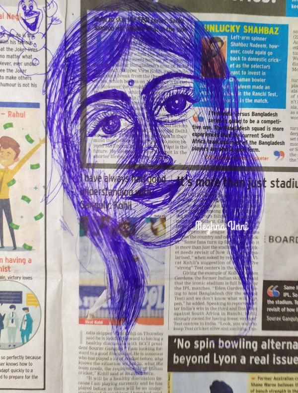 After scribbling the above sketch, I suddenly wanted to do a girl’s face too. So the following happened ๐ Don’t know whose face it turned out to be though.. ๐