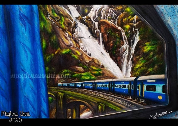 This work was done two days back as an entry for the CPS Wisteria Interschool Competition, whose theme was: “View from a Train Window”.🙃 And I’m happy to have secured the First place 😌🙏