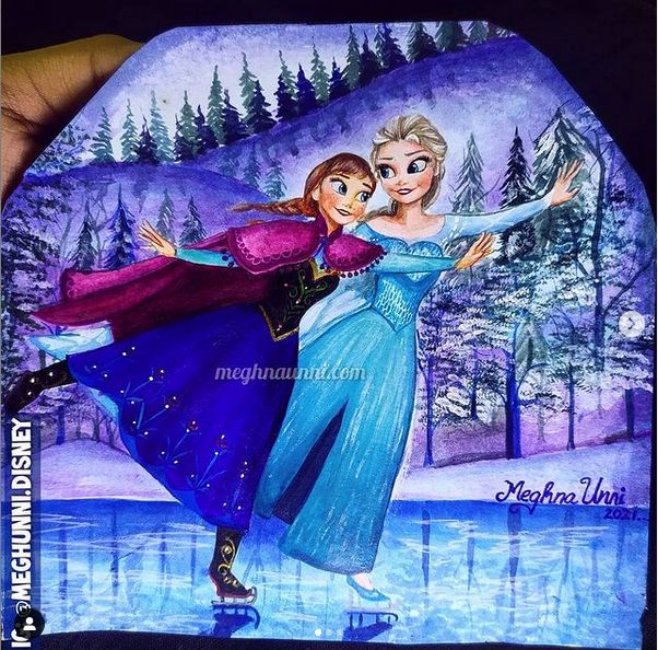 Elsa and Anna Skating painting done using Acrylic paint🥰 Loved doing Anna’s dress😍