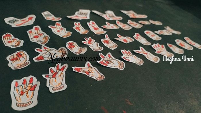 I drew and made tiny cutouts of all the 28 Asamyuta Hastas for my dance project 28 Asamyuta Hastas Sketches for Dance Project Tagged on: Dance Paintings Pen Drawings