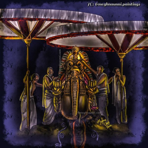 Varadar Vaikasi Brahmotsavam Day 5 : YALI VAHANAM Painting