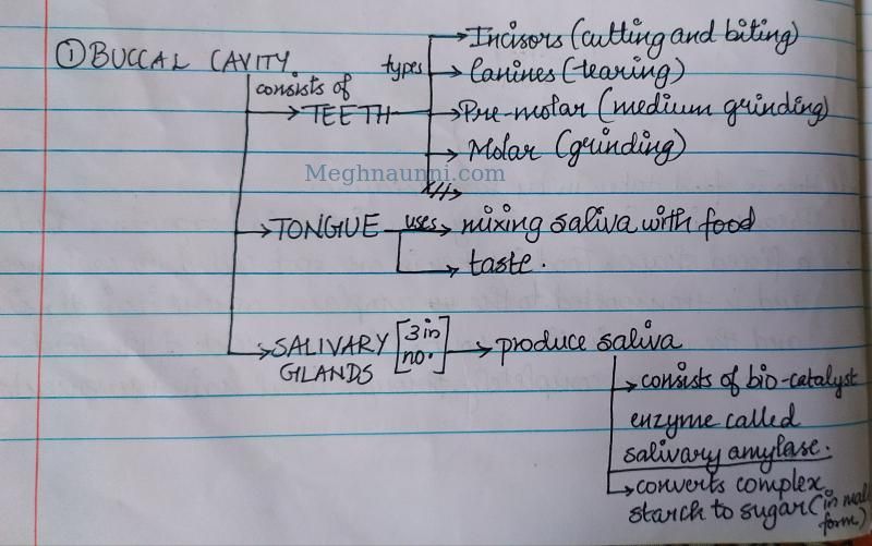 1. BUCCAL CAVITY: The buccal cavity consists of the teeth, tongue and salivary glands.