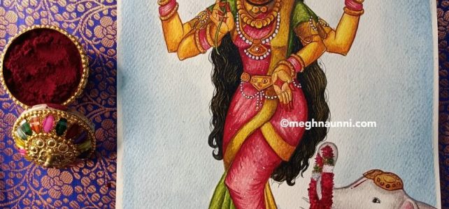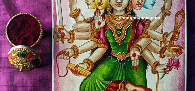 ✨BALA KAMAKSHI✨ A visualisation of the Bala swaroopam of Kamakshi Devi at Kanchipuram 🙏🏻 Done on A3 sized watercolour sheet using Acrylic paint♥️