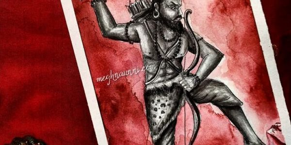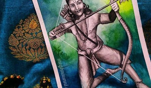 PARASHURĀMA AVATAR.In this one, I tried to include Parashuramar killing Kartavirya Arjuna (he has a thousand hands) with his axe. I kind of liked the unintentional watercolor paint effects in the background. 😂🙊 P.S.:This pose was modelled by me🙈 no