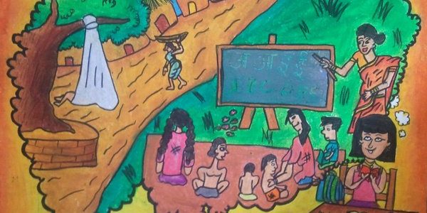 Meghna won first prize in Apni Pathshala Late. Dr Devendra Kumar Sundd art competition 2013. The theme of the contest was “Follow your Dream”. She had drawn the picture depicting herself as a village teacher teaching the poor and the