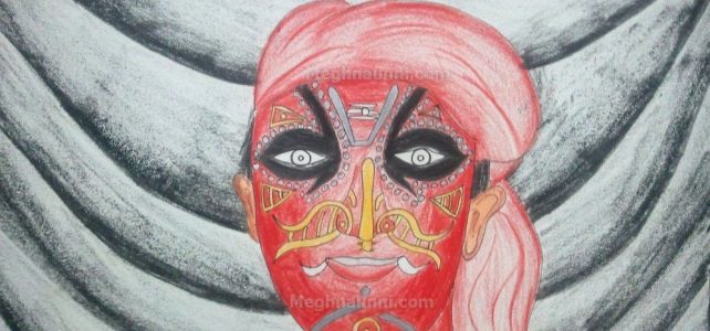 ‘Face Mask’ Painting using Plastic Crayons. This painting was done for a competition titled ‘Face Mask’ by UNESCO France. Used Camlin Plastic crayons for this painting. This is the face make up of a Theyyam Artist, the folk art form