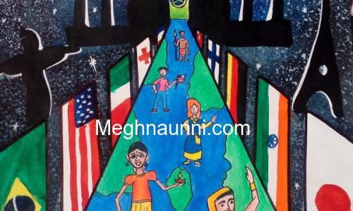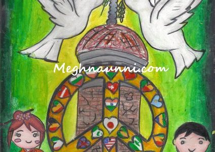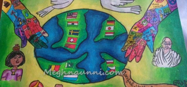 My Entry for 2016 Peace Pals International Art Contest (May Peace Prevail on Earth). The Theme for 2016 was “Oneness with Diversity – The Fuji Declaration”. Done this painting with pencil colours and background with water colours.