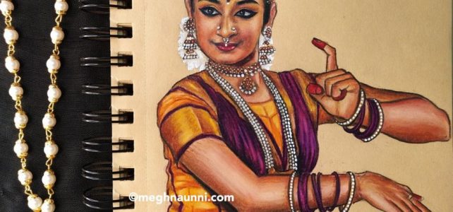 A dancer portrait after a long time! A commissioned work for @_keerthihegde_ ❤️ as a gift for her teacher. Done using Prismacolor colour pencils on Brustro Toned Sketchbook.
